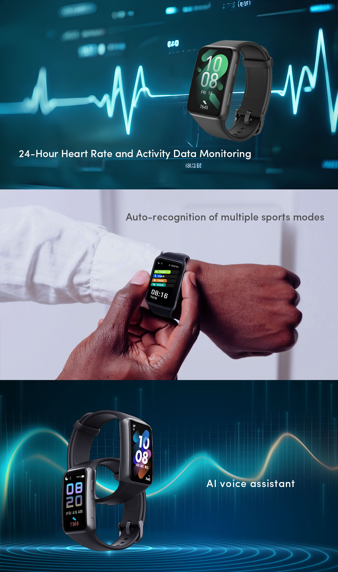Health and sports tracking that emphasizes of cardiovascular health. Detailed sports data record, let you know the condition of your body at any time.
